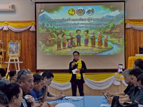 เมื่อวันที่ 23 มกราคม 2569 นายธวัช ใสสม ผู้ตรวจราชการกรม ปฏิบัติหน้าที่ผู้อำนวยการศูนย์ศึกษาและพัฒนาชุมชนเพชรบุรี ประธานในพิธีปิดและมอบประกาศนียบัตรแก่ผู้ผ่านการอบรมใน โครงการเสริมสร้างและพัฒนาผู้นำการเปลี่ยนแปลง กิจกรรมย่อยที่ 1.2 หลักสูตร Train the Trainer Course (ครู ข) รุ่นที่ 2 (จังหวัดกาญจนบุรี สมุทรสงคราม และสมุทรสาคร) ณ ศูนย์ศึกษาและพัฒนาชุมชนเพชรบุรี